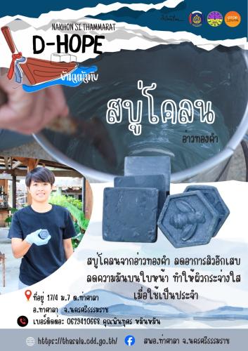 สำนักงานพัฒนาชุมชนอำภอท่าศาลา ประชาสัมพันธ์ "สบู่โคลน" OTOP นวัตวิถีบ้านหน้าทับ อำเภอท่าศาลา "สบู่โคลน" สบู่โคลนจากอ่าวทองคำ ลดอาการสิวอักเสบ ลดความมันบนใบหน้า ทำให้ผิวกระจ่างใส